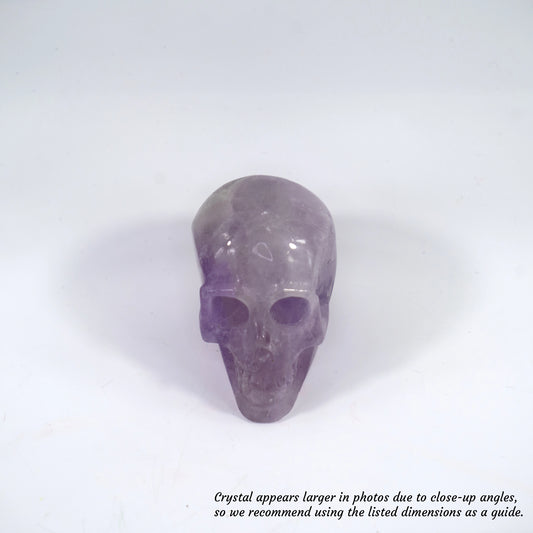Overcome Worries & Fears | Unique Hand-Carved Amethyst Skull; 8x5x6cm, 298g