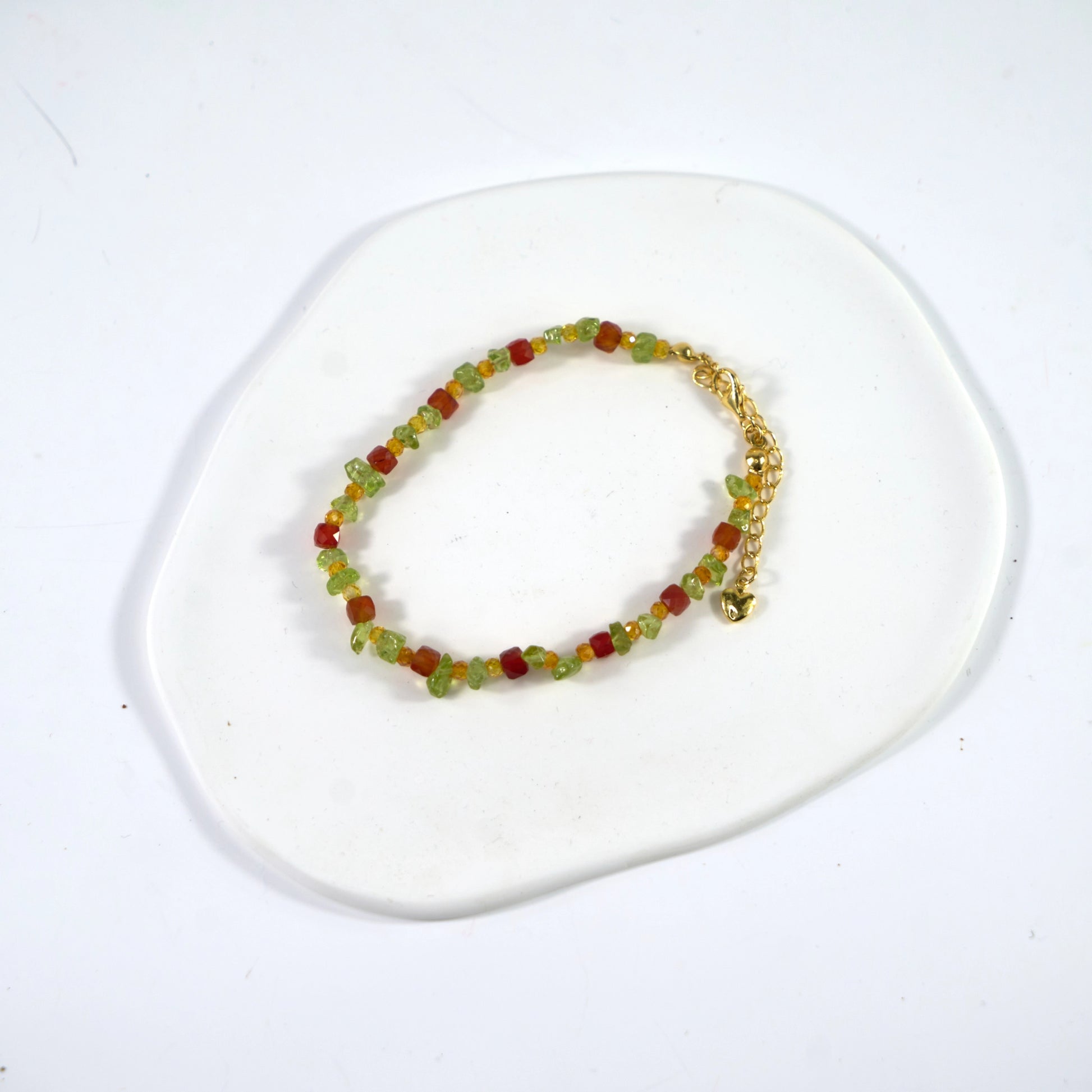 Ensemble, la Spessartine et la Prehnite créent un bracelet qui n’est pas seulement un accessoire époustouflant mais aussi un outil puissant de transformation personnelle et d’équilibre émotionnel.